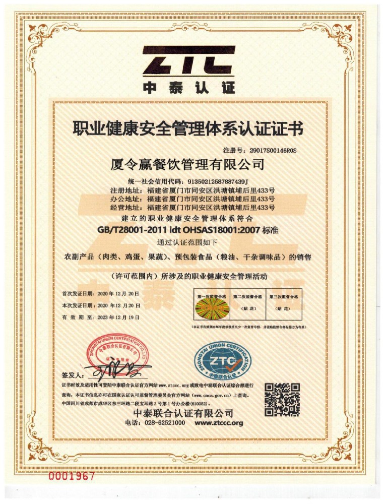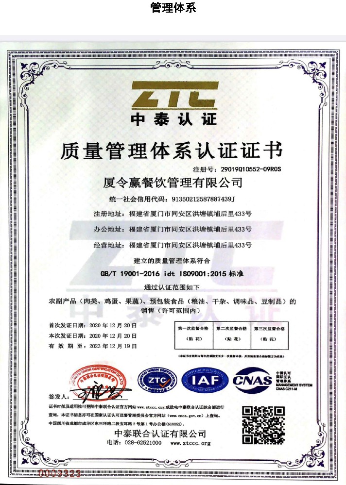 廈令贏餐飲管理有限公司從事食堂蔬菜配送,飯?zhí)贸邪?,食材配送,糧油配送,農(nóng)副產(chǎn)品配送, 在福建各大農(nóng)批市場設立蔬菜配送分部,擁有專業(yè)的蔬菜冰鮮冷庫及肉制品凍庫,配備蔬菜檢測化驗儀器...
